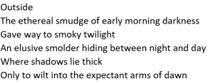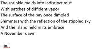 Wonderful prose. Reminds me of the many forms of rain I have personally encountered in the Northwest and the reason I currently live where I do.