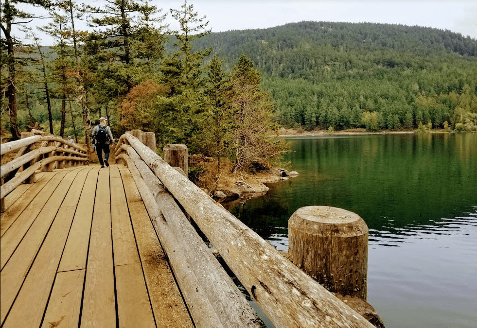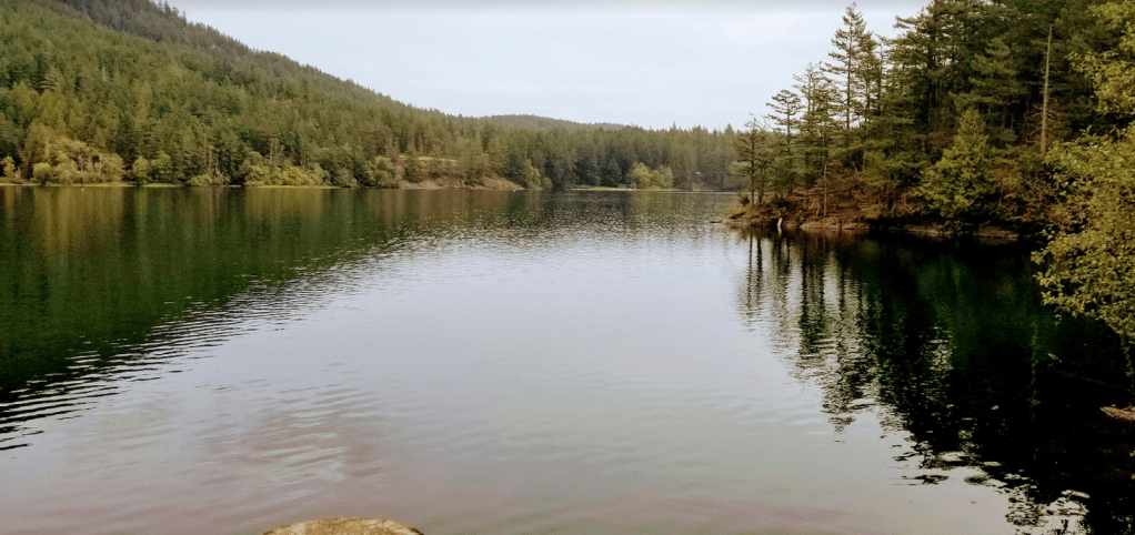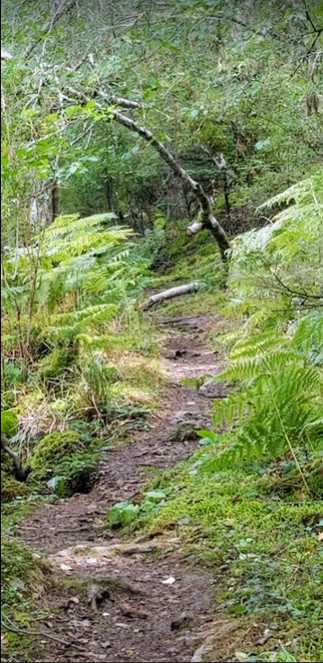 We took a hike up to a park surrounding Cascade Lake above the resort. OMG… the first 1/4 mile was straight up, and it continued that way for a bit. Pant box territory. We persevered. Even Kai was panting, something which he seldom does… The lake at the top was surrounded by temperate rainforest flora: