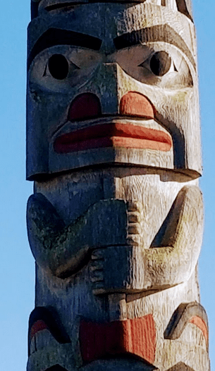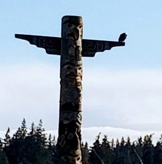 It stands on a short spit of land welcoming all who come by sea. The cedar tree it was carved from was recovered after a wind storm blew it down. At the time of it’s demise it was 720 years old.