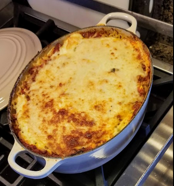 Well… I’ve been living aboard boats long enough to have had plenty of opportunities to substitute ingredients. This was just an opportunity. What to do… what to do… I cooked the weird noodles and opened up a box of orecchiette and cooked that up as well. Using both types of pasta as the lasagna noodle substitute, I layered the lasagna using the meat sauce, pasta of both types, cheeses, meat sauce, pasta etc. until my damn oval dutch oven was full. I placed it in the oven for the requisite amount of time to meld it all together, served it up and… it was an olfactory and gastronomic delight. It actually was easier to serve up.