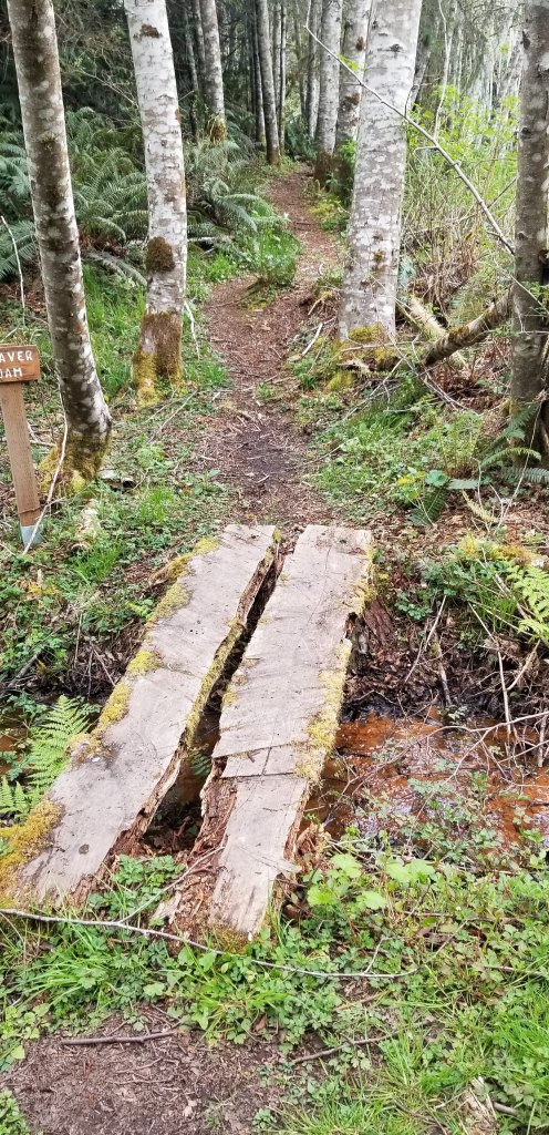 The Timberton Loop Trail, a variegated pathway. It encapsulates an abandoned golf course, traverses glades where Trilliums bloom and fern grotto’s thrive. Salal and Oregon grape are dispersed throughout the region, and loamy trails bisect groves of red alders, Douglas fir, red cedar and hemlock. A misty two lane dirt and grass track weaves it’s way through a series of beaver ponds. It is exactly the proper style of walkabout that induces the sort of accomplished thirst that only a cold and well-crafted IPA can slake.