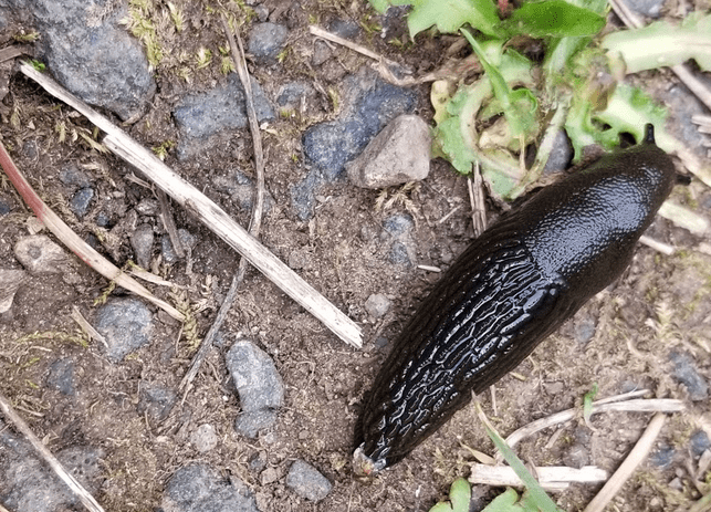 A slug clad in a shiny Darth Vader black. Probably a Arian ater or Black Arian. And we all know that the Pacific Northwest is slug central…