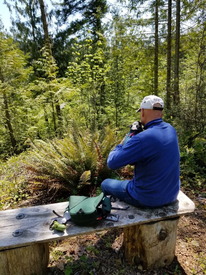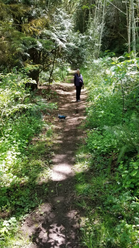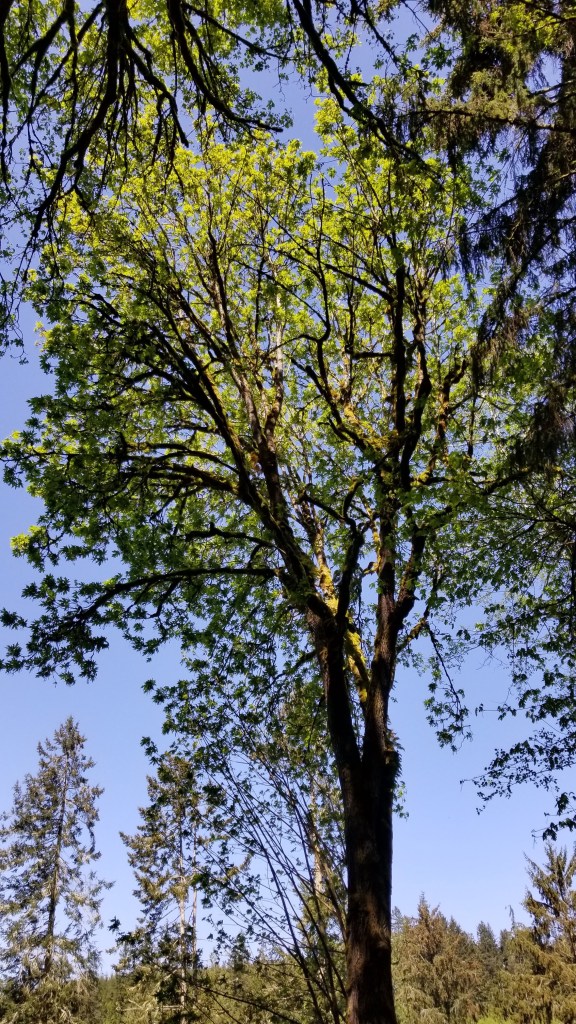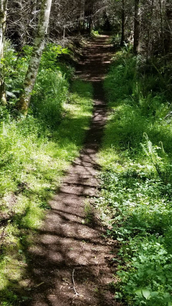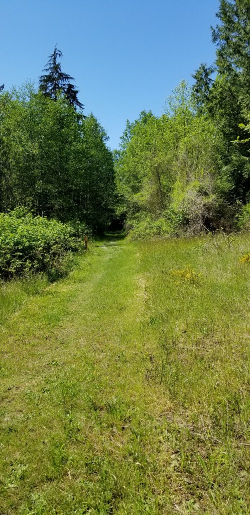 Doesn’t matter. I’m still going to show you pictures of the Niblicks Loop Trail. Your part… is to let your imagination run free. Close your eyes and listen to the wind as it winds its way through the branches of the trees. Feel its tender fingers caressing your face. Immerse yourself into the riotous greenness of the trees, bushes and grass. Imagine your feet moving upon the spongy, earthy loam of the trail. Insert the songs and calls of multiple avian species, and the hums, buzzing and clicking of insects.