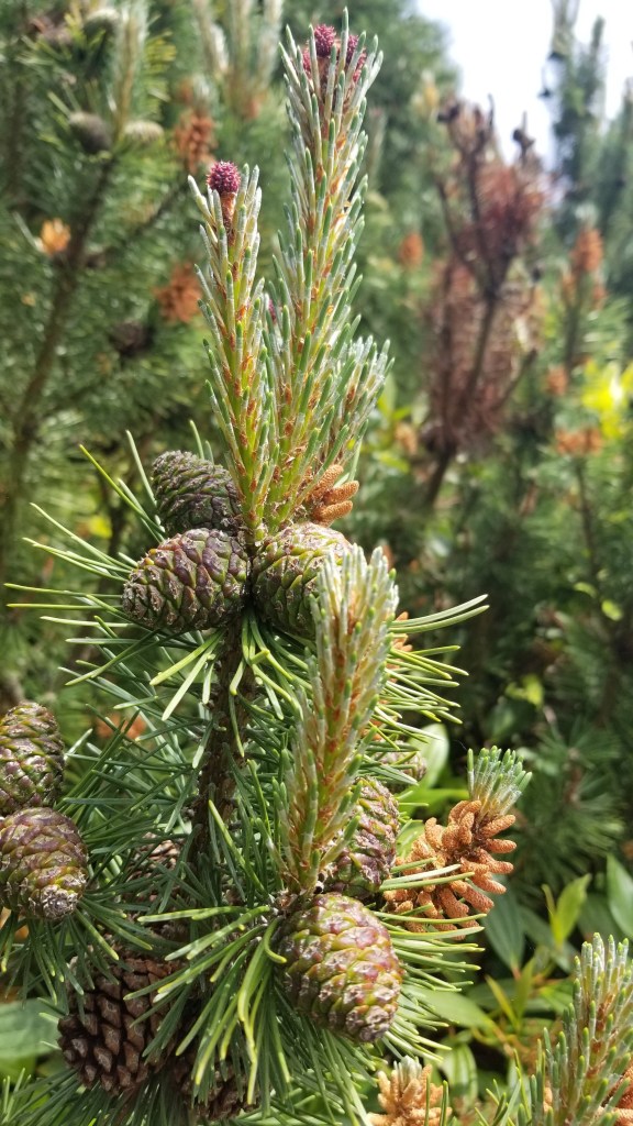 Next up were various types of pine trees displaying their sexual organs in plain sight for all to ponder. and of course the ubiquitous rhododendrons of all colors: