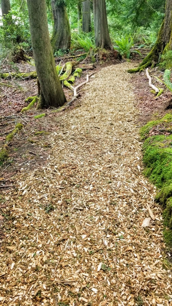After a brief crossing of a residential street, we entered the Talbot Trail. This trail, being a bit higher up on the ridge is more exposed to wind. There were a few windfalls that had been removed since the last time we hiked here and the chips had been spread out on the trail for the first several hundred yards. Cushy walking…
