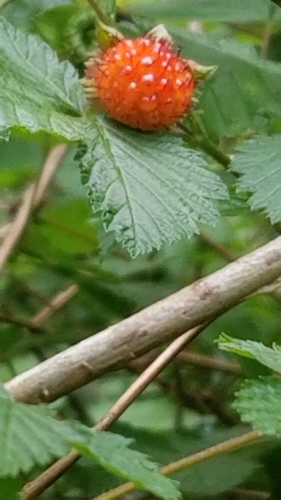 A ripe salmon berry