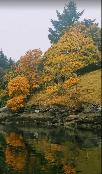 This group of maples are on the Southern shore of Reid Harbor on Stuart Island in the San Juan archipelago. I met them last year when they were green and hearty and then later when they began to slow down their photosynthesis, cannibalize their photosynthesis aparati and collect those energy sources down into their trunks to store for the winter. This September I caught them as they were just starting that process again.