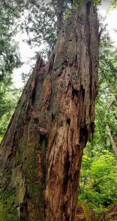 A grand dam of a red cedar… 1000 to 1500 or more years old. She’s been sitting there on what is now the Rainier Trail in Port Ludlow for millenea and somehow evaded the ax and saw…