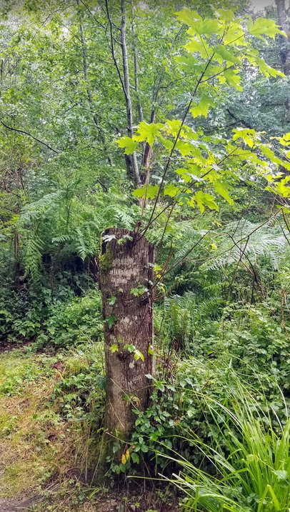 Now this is is an interesting sight. I’ve seen quite a few clumps of maples grow this way in the forest. It is usually a growth of 6 or 7 children surrounding a mother stump who provides sustenance as they are growing up.