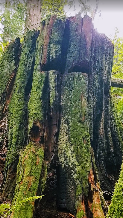 This is what will happen to the tree with the swooshy lower trunk. Based on its state of decay, this ancient stump has been like this for a very, very long time. It is easy to trace where the remainder of the tree fell and became a nurse log…