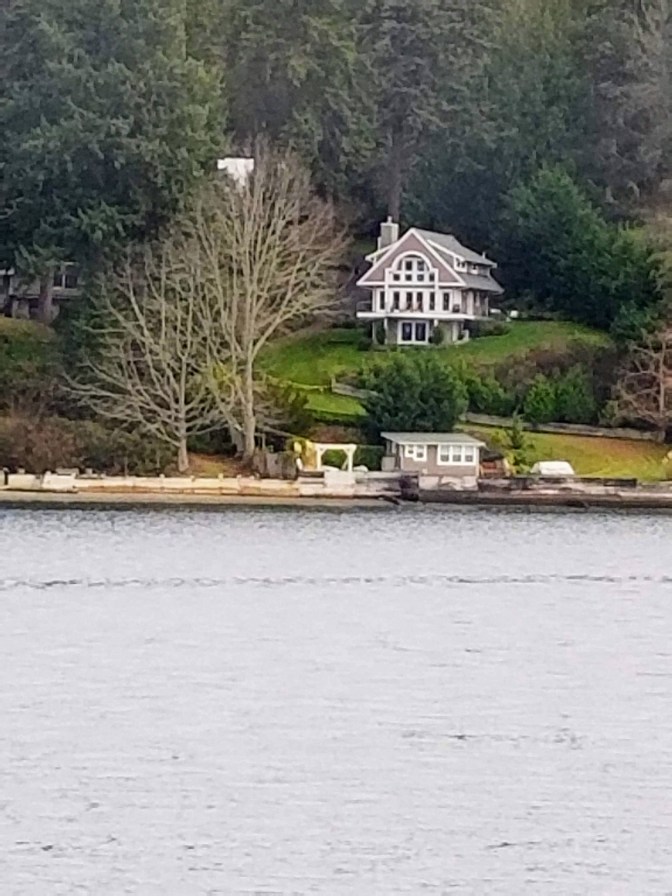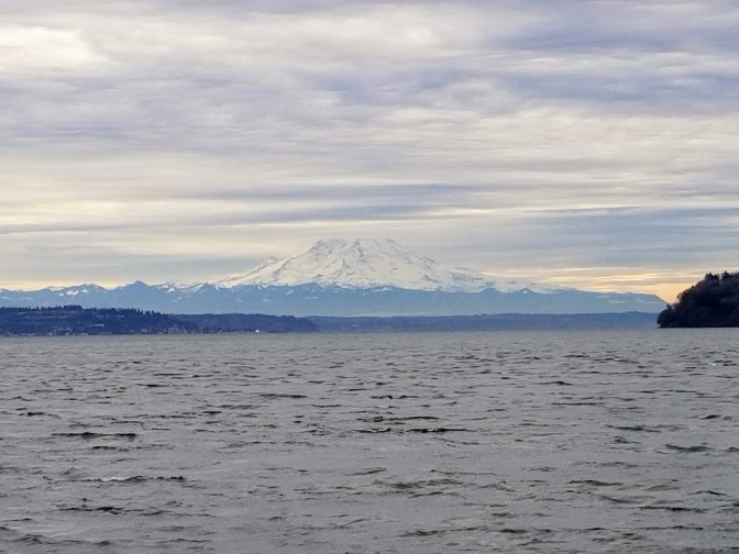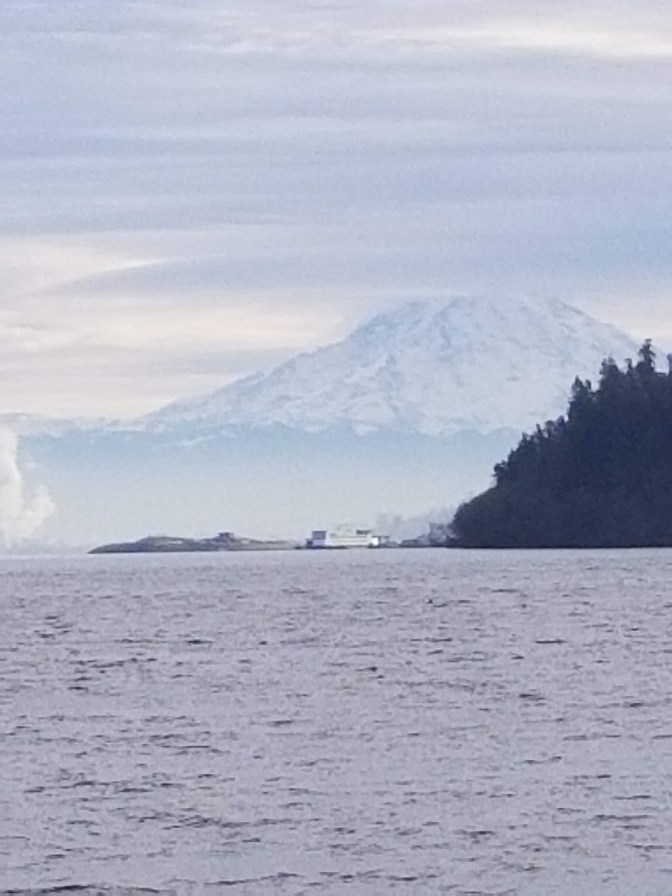 As you leave Gig Harbor you pass then end of Point Defiance and encounter Mount Rainier if the cloud structure allows it. This is a winterish view with a bit of telephoto added in for drama.