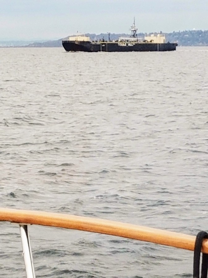After Colvos we entered into an area with lots of commercial traffic going between Seattle, Southworth, Vashon, and Bremerton . Ferries, bulk container ships, Oil / diesel barges, tugs pulling and pushing tows. They were all out and about doing their commercial boat things. The tools to follow their activities are: AIS, radar, binoculars, and a kewl program WSDOT Vessel Watch that Les discovered.
