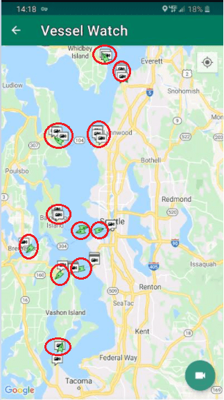 You can also click the video icon in the right hand corner to show you the vehicle line up at the ferry. For the ferry passenger, a very nice to know bit of info. For the boater wondering if the ferry will depart on time and cause a collision trajectory, you can look at the video cam to see if the ferry is still loading which might mean a later departure and the 5 minutes gained will get you past the ferries route of travel so you can focus on the bulk oil carrier that a large tug is pushing into your path from Starboard (right side of the boat) which means it has the right of way and you need to call the tug and let the captain know that you will pass behind it.