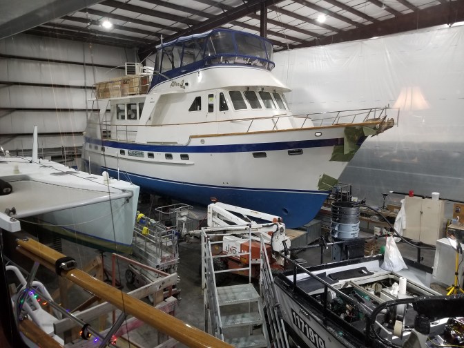 So… here we are in Anacortes. The boat is on the hard and we are in the Majestic Inn and Spa for our anniversary (44th), Christmas Eve and Christmas. After that back to yard life…