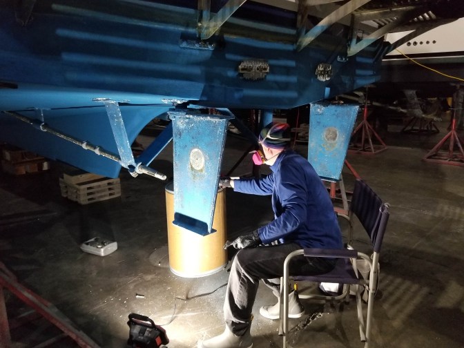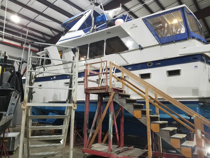 Great Northern in drydock in a large, heated, dry, insulated warehouse in Anacortes.