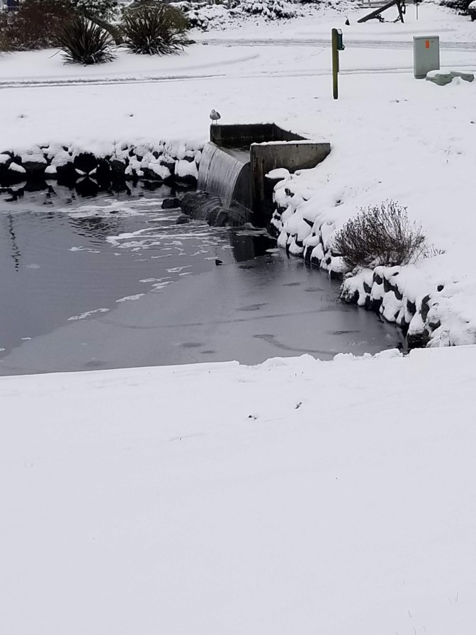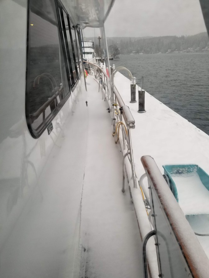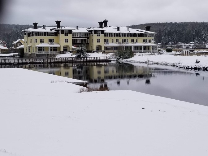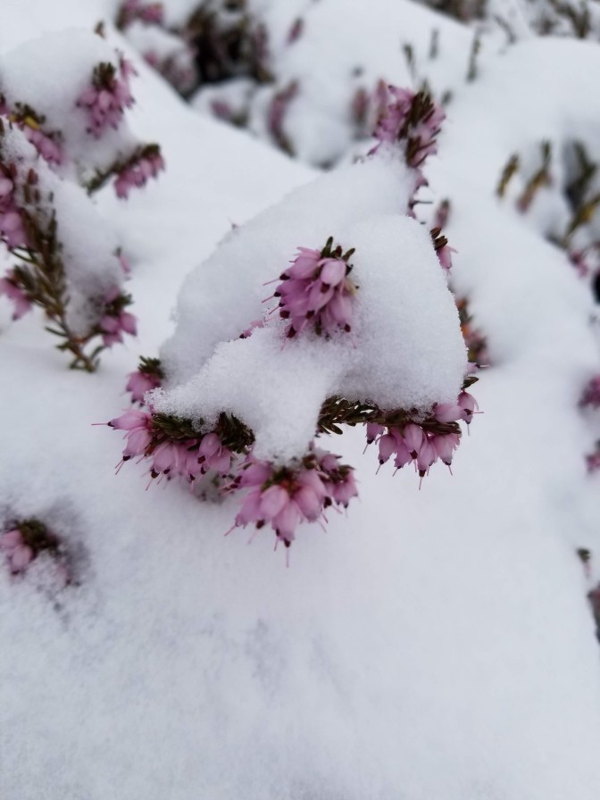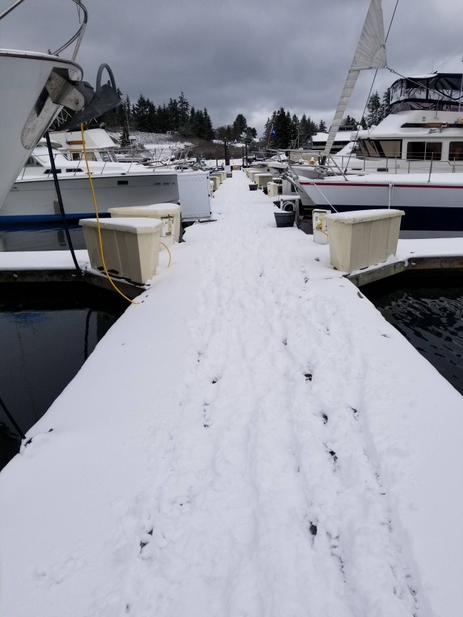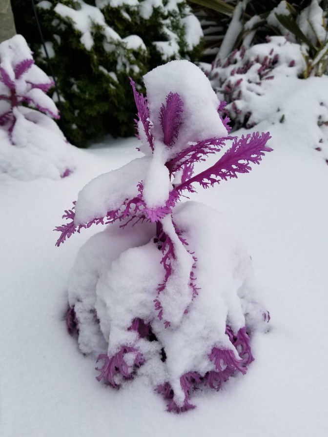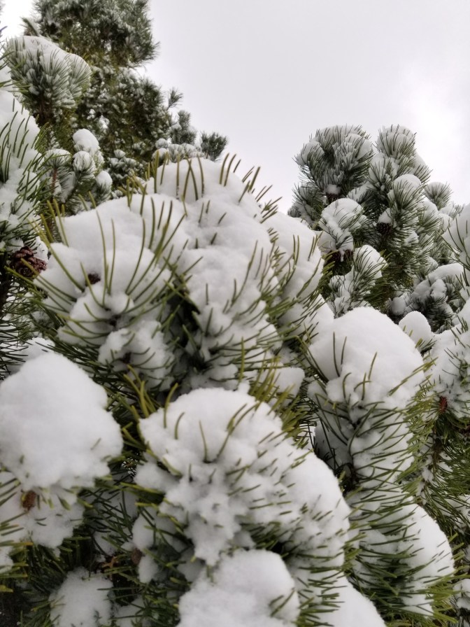 Last night… the single and solitary frozen crystals drifting from the clouds gave way to a cornucopia of fledgling glider pilots bent on frosting the Earth with their mirth. Leo thought it a total hootsville and slip-dashed about the snowy decks only pausing to eat a biteful and dash off again to slip-slide about. I took videos, but I’m too cheap to pay more and update my WordPress plan so I can share videos. Oh well. The other chihuahuas we’ve had the honor of sharing time with were not the snow day type. Not our behemoth chi, Leo… He has no problem braving the drifts and ice and… he doesn’t bother with the famous chi shiver routine. Why bother with that WHEN THERE IS SNOW TO PLAY IN!!
