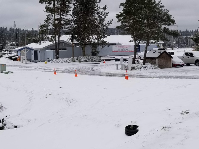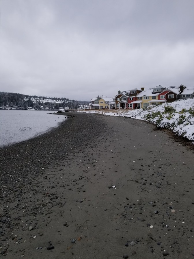The beach… The water is 48 degrees F or there abouts… so… no snow for the most part.