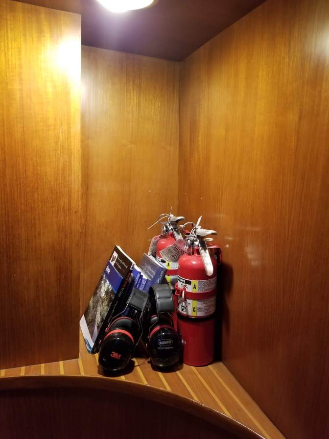 A lonely, disorganized landscape situated on the stairway to the master cabin.