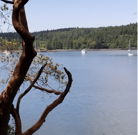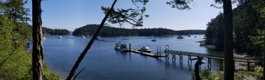 6.28.21. Next stop, Blind Bay Shaw, Island . A delightful bay to spend time lollygagging… We visited Blind Bay several times over the season. It has a centralish location in the islands. There is a great grocery store nearby on Orcas Island just a short dinghy ride across Harney Channel. Good holding ground for the anchor, and reasonable wind protection.