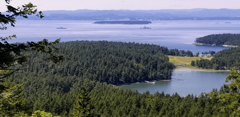 And on a clear day you can see Sidney BC in the distance and Canadian warships making their way down Haro Strait.