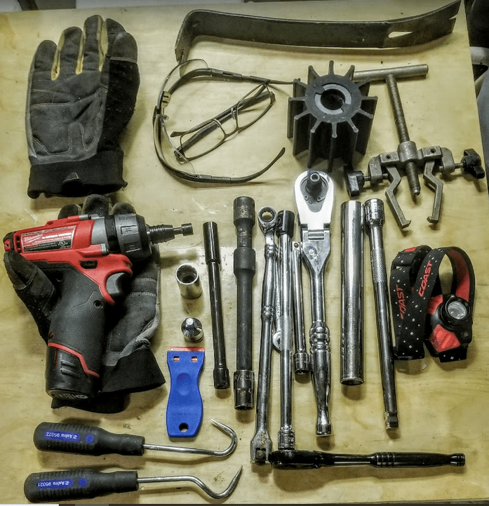 As I’ve said before… enough of all that inane prelude! Besides putting a note in my engine log to change out the impellers every 250 hours, a boating season in our case, so both theories are covered, the remainder of this post deals with an explanation of what steps I had to consider, and a bit of the process to change out the port sided impeller of my Caterpillar 375 HP turbo diesel engine.