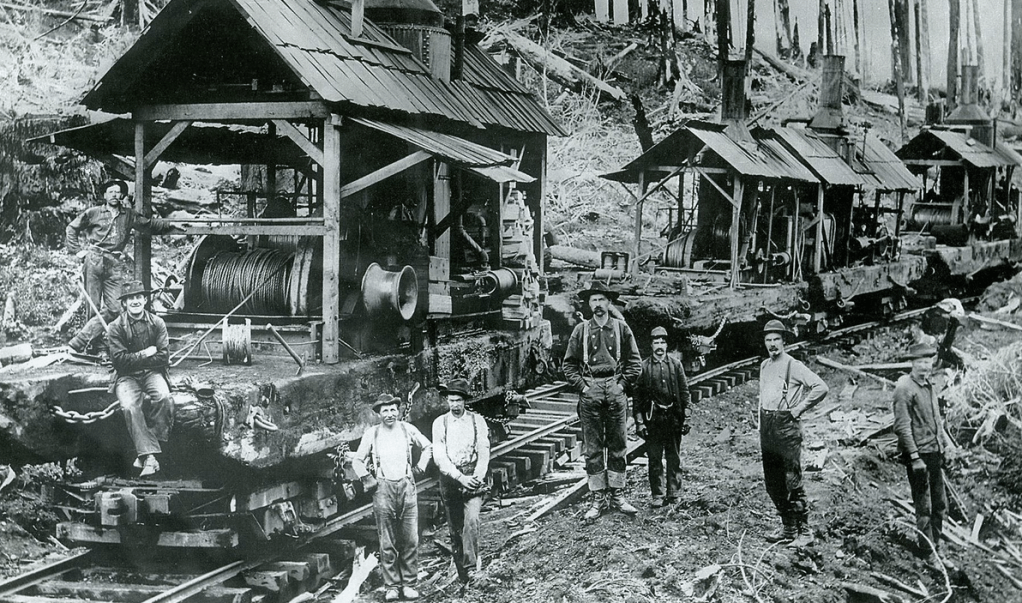 Try these URLs for more information: https://www.seattlepi.com/local/seattle-history/article/Photos-A-tale-of-the-Northwest-s-logging-past-6775332.php https://en.wikipedia.org/wiki/Lumberjack
