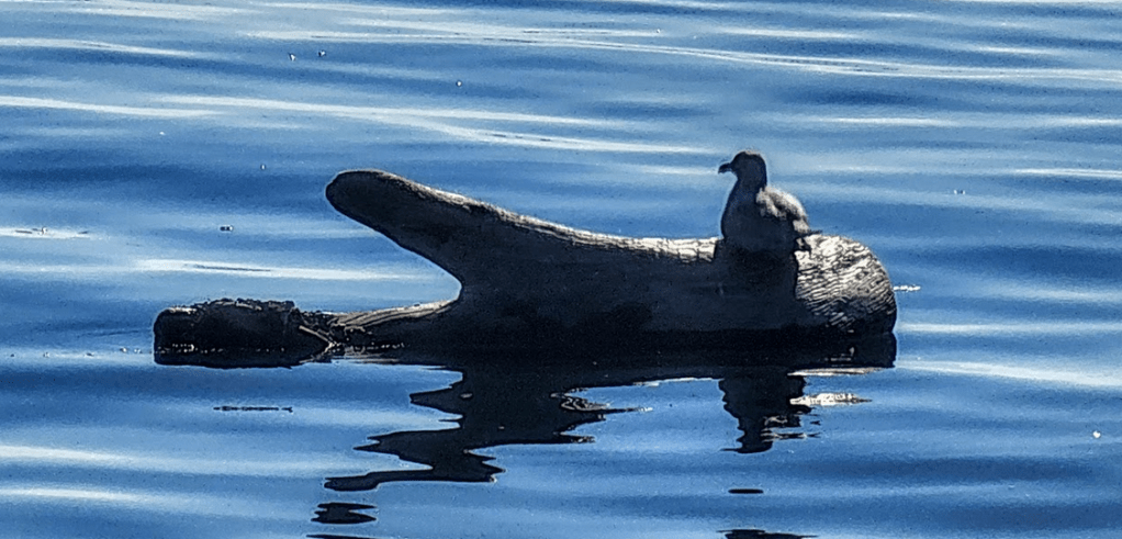 A seagull resting on a piece of driftwood Just Northwest of Waldron Island
