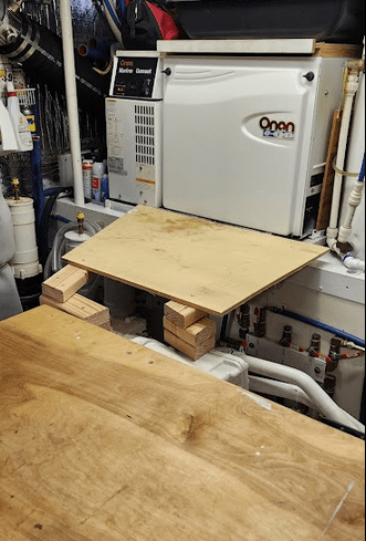 Maybe some day, those benches will be painted… Let it not be said that performing engine work on a working trawler / home, need be uncomfortable or ergonomically displeasing…