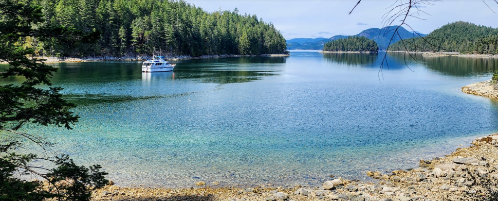 What an experience we’ve had on our way to and in the Discovery Islands so far. Excellent weather. Light winds. Limited precipitation. Uncrowded anchorages. And… comfortable motoring in a well found, well performing boat between each one. Exceptional anchorages on our recent itinerary: Hunter Bay, Friday Harbor, Reid Harbor, Nanaimo, Tribune Bay. Drew Bay, Carrington Bay, Von Donop Inlet, Waiatt Bay… Offerings: Tranquility, solitude, serenity, nature immersion, safe anchorages.. Those are the touchstones of memory that we will fall back on in the future. I am lucky to have the privilege to explore these hidden gems with our sojourning tribe. It will leavenun an indelible mark on all of us.