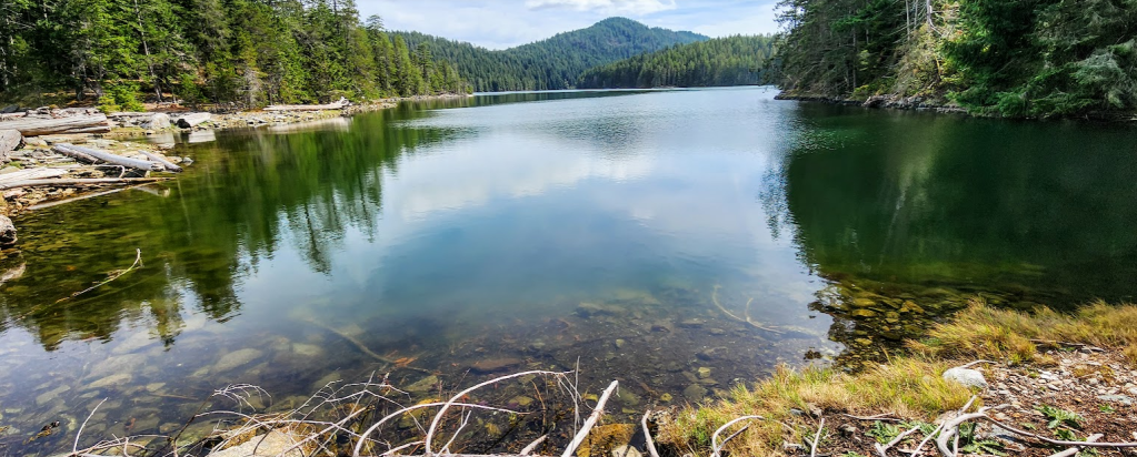 Yes… there are wolves and bear on Cortes Island. The largest resident wolf pack sports 16 members. There are several other smaller packs. And… wolves from other islands do swim over to Cortes from time to time if they deplete the food supplies on their current island, and they think that more might be available on Cortes. We did meet several other hikers on the main trail leading to Carrington Bay. No one seemed to be concerned about wolves, bear or other wildlife. We, on the other hand did carry bear spray…