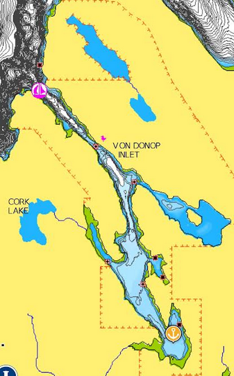 For us, the highlight of Von Donup Inlet is its numerous secure anchorages. There are many ideal spots to drop anchor and explore the nooks and crannies at a leisurely pace. We paddled our kayaks and SUPs, and made slow dinghy rides throughout the inlet. In mid-September and beyond, it is a quiet spot to relax and take in the serene surroundings. We heard wolves howling at night.