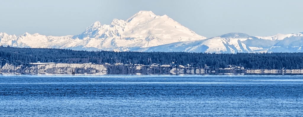 Port generator (Ginny) started: Check. Functioning as designed: Check. Water gurgling out of stern exhaust pipe: Check. Chart plotters, Furuno & Simrad instruments, AIS, autopilot, radios on. Nominal functioning noted: Check. Course plotted: Check. Frozen solid dock-lines made ready for depart. Stern line required boiling water poured on its little head: Check. Dock electrical cables removed from dock pedestals and coiled on fore-deck: Check. Dock ladder replaced with depart ladder: Check. Engines started to warm up: Check. Engine room reconnoiter to review nominal functionality, check belts, check for leaks, gauges etc., reviewed by deckhand / engineer / co-pilot (Blair): Check. Startup times for everything logged: Check. Depart plan discussed: Check. Headset batteries inserted, headsets turned on and functioning: Check. Leo placed on pilothouse settee to eliminate wandering about: Check. Deckhand (Blair) removed stern lines, fore and aft spring-lines, and finally, the bowline: Check. Captain (Les) held stern into the dock with the stern thruster so deckhand could get back on the boat: Check. Depart away from dock accomplished with aplomb: Check. Co-pilot assumes Captaincy: Check. 75,000 pound boat is guided out of Ludlow Bay, Tala Point to starboard, the Cascades in the distance: Check. Captain engages course to Port Ludlow: Check. And so on… That is what it takes…