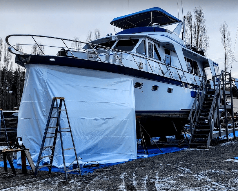 Why, one might ask? Well… we were off to the Port Townsend Co-Op to have a new bow thruster installed. So what if it’s 24 degrees with snow and ice on the ground… WE WANT A NEW THRUSTER!!