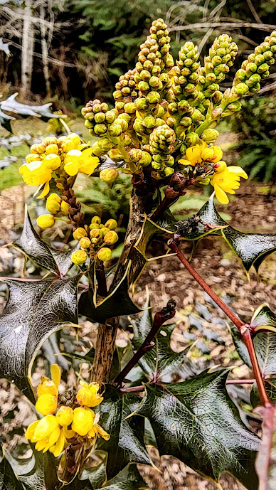 Blooming Oregon Grape (Berberis aquifolium P.) My… my… my… what shiny leaves you have…