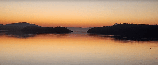 This are several reasons for visiting Hunter Bay again: It is an anchorage that we can reach within 4.5 hours from Port Ludlow, the shallow bay offers great holding for our anchoring system, it is seldom crowded and it is exceptionally picturesque. This is a view to the East through Lopez Pass from the anchorage taken at 0458 this morning. You see… the early birds were chirping. That woke me up and I noticed a slightly pink haze filtering through my port lights. I got up and snapped a few pics to document the occasion. This is one of my favorites: