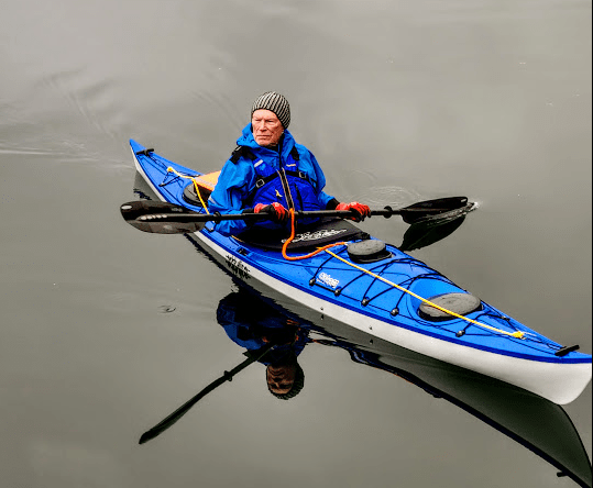 No. That’s not me. I was a ginger redhead when I had hair… It was a simple craft and I paddled it everywhere I could, including Owens beach, Point Defiance, Salters Point, Steilacoom, Steilacoom lake and the Columbia River. Did I wear a life preserver… uhhh… I can’t remember. It was 1963 afterall… BTW, you can still get the plans. Compared to our Eddyline kayaks that we currently paddle… it was a Neanderthal boat. But it was cheap to build and it got me on the water looking back at the shore.