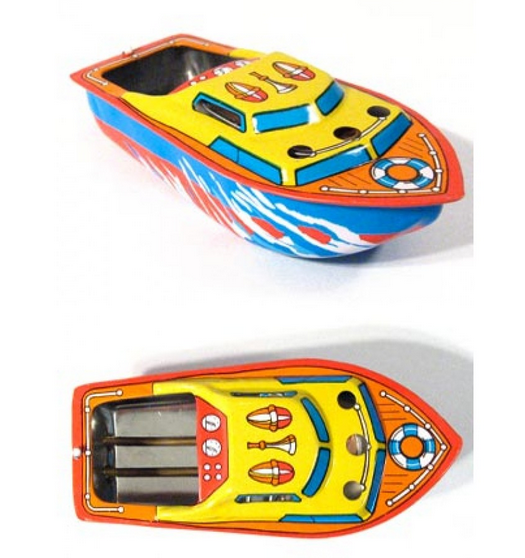 The back story: There was a grocery store about 4 blocks away from our house in Lakewood Center where I grew up. At the time, Lakewood Center wasn’t much more than a village surrounded by post war housing just South of Tacoma. I can’t remember quite what brand the store was… but that was before the advent of huge conglomerates like Safeway etc. Just before the line formed to flow past the cashier, there was this bin that had bits and bots of odd Japanese sourced trinkets. That was when “made in Japan” was more a laughable nickname and well before the “Toyota Way” and its 14 Management Principles that held sway over the world manufacturing of automobiles. Nestled amongst the bits and bots was this little tin boat. I had to have it. It cost well under a buck. Every thing in the bin was under a buck.