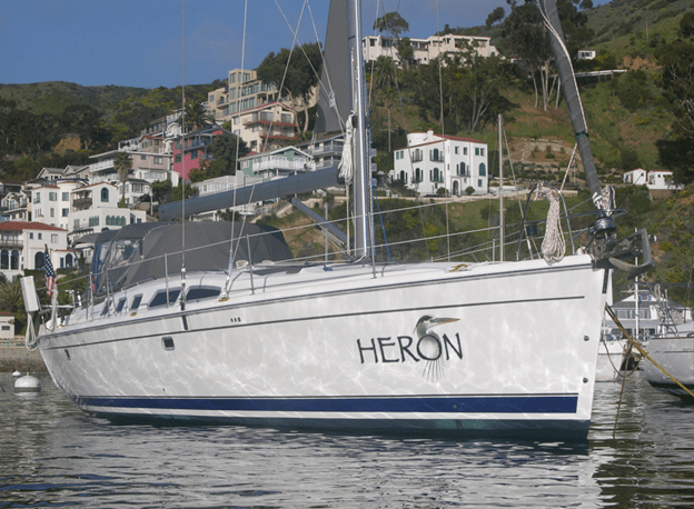 We were thrilled with the modernity of it all. Scrumptious aft cabin. Generator. Ample water capacity, and reasonably good sailing characteristics. And… COMFORTABLE for Les and I and our little dogs! That started a trend. We liked the boat, but the cockpit was… well… not the most sumptuous spot to hang while in port. So… we traded that in on an aft cockpit Hunter 49 that we named Heron. Oh my. We went back to Alachua, Florida and saw her at the factory and knew it would work for us. It was an excellent So-Cal liveaboard…