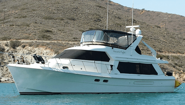 We lived aboard Heron for nearly 4 years, first at the Kona Marina and then at the Coronado Kays Yacht Club. But… it was after all, still a sailboat, and Les was swerving towards switching to a powerboat. And finally, after much hand wringing and consternation (on my part) about making that switch… we did so and bought our first powerboat, a Hampton 49. Compared to a single deck 50 foot sailboat, It essentially had 3 decks. Lowest deck: 50 feet of Engine room and living quarters with two staterooms and 2 heads.. Mid level deck: 50 feet of Main salon, galley, pilothouse and foredeck. And… on the top deck: 30+ feet of flybridge steering station with comfortable seating for 7 or 8 peeps plus dinghy storage. All combined: 130+ feet of living space combined. Hmmm. 50 foot sailboat or 130 feet of living space on a 50 foot powerboat. Well I get it… you can’t live in the engine room on a powerboat, but there is sooooo much more comfortable space.