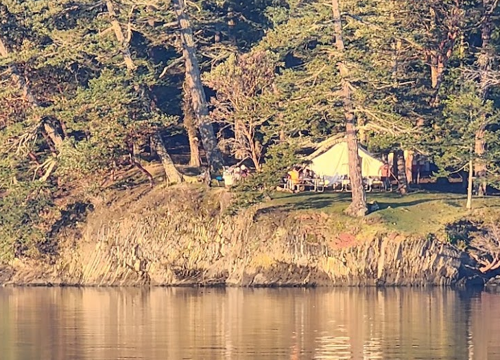 And in the State park: Campers in a magnificent wall tent on the bluff overlooking Prevost Harbor: