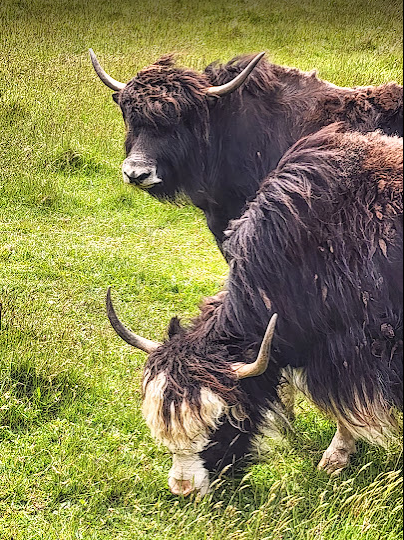 Prevost with its forested shoreline projects a sense of protective serenity. At the West end there is a small community pier with a dock that affords berthing for a few local boats and space for dinghies to tie up. We’ve always found space to tie up our dinghy there. A graveled county road leads from the pier, to the Western end of the island and the lighthouse at Turn Point. It is an easy hike that meanders past the Eriksen farm with its contingent of American Yaks.