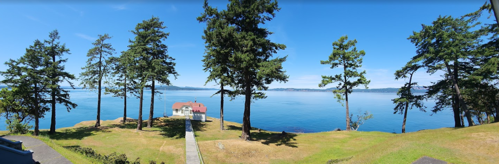 Starting at the pier, the hike out to the lighthouse and back ends up being about 4 miles. Hiking from the Reid Harbor park dock makes it a 6+ mile jaunt and that is important distinction just now. A 6+ miler is a bit too far for me and the 4 mile distance fits right into my recovery program… I had open heart surgery 6 weeks ago to repair a leaky atrial valve and a dilated aortic root, more commonly known as an aneurysm. I now have a nice new bovine bio-prosthetic atrial valve and a Dacron sheath that replaced the dilated aortic root. We’ve named the valve Bessie. We’ve not named the Dacron sheath that replaced the aneurysm, but we are working on that. All suggestions will be considered. So name the sheath and let me know. Might as well, eh? Anyway, enough of that… but it does explain why my blog has been silent. That will most likely change as I do love writing and sharing what we discover while plying the waters of the Salish Seas.