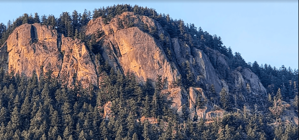 Mt. Maxwell consists of two main climbing walls, the smaller Smoke Wall to the left and the larger Hip Hop Wall, center stage. According to BC climbing blogs, both support nice sharp edges and cracks to play with. Climbing is now… apparently off limits within the Parks and Preserves.
