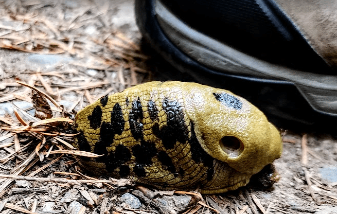 This little niffer was just a few centimeters from becoming slug jam or what is commonly known as: Waffle stomped skishy, sticky, slimy mush.