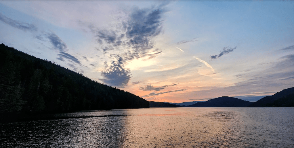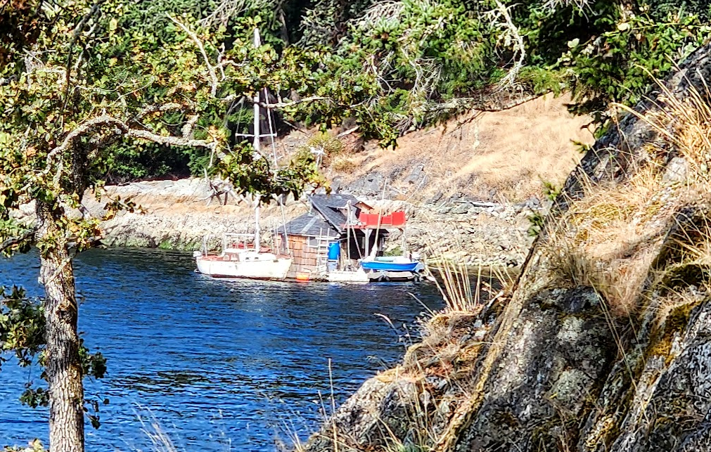 What’s in a name one might ask:  Burgoyne Bay, in the local Halkomelem language: Xwaaqw’um.  Figure out how to say that one without an AI app.  The shores of the sizeable bay on Salt Spring Island are part of the Burgoyne Bay Provincial Park, Mount Maxwell Provincial Park, and Mount Maxwell Ecological Reserve. Those designations translate to:  No houses, no summer cabins, no structures to speak of and with the exception of a park personnel habitat building and dock, there are very few non boating related electric lights. And, with the exception of holiday weekends, there seem to be few mid-week visitors to impinge upon the sense of solitude. There are plenty of other places to go on Saltspring Island if you are in need of having those things closer at hand.