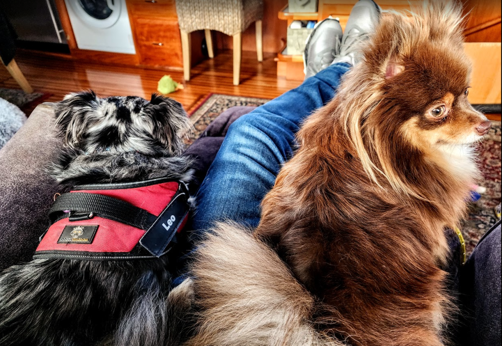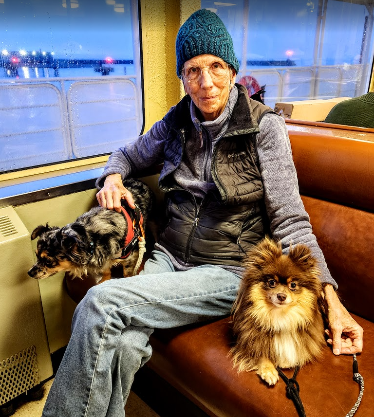 On December 5th, Les, Leo and I traveled to Victoria on the Coho to go on a “get to know ya” walk with Keren, her daughter, Tony, Keren’s top breeder, Leo her up and coming breeder, and Bliss one of the mom dogs. We took a very long walk together from the ferry landing down to the Fisherman’s Warf area and back. It was a 4 mile hike. All the dogs got together well. Bliss and Leo were fine together. He was his usually aloof self, but the top dogs and Bliss thought he was just fine.