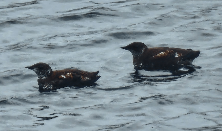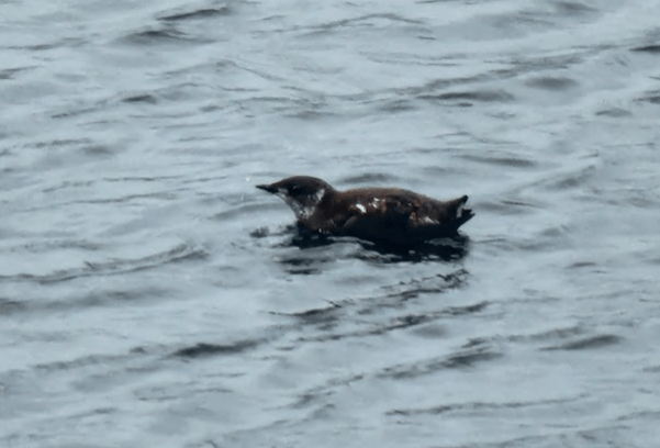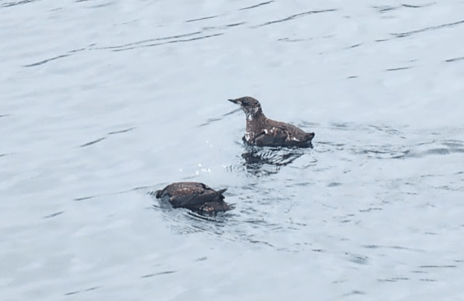 The past few days we have been serenaded by a relentless soft, high-pitched, repetitive contact call made by a few small water birds that have been fishing close to the boat. It occurs in mid-April. I opened up the Merlin Bird app that can identify birds by the sounds they make and I found out that the birds making the chirp / peep sounds were: Marbled Murrelets. If you open the URL with a control / click you can hear a sampling of their repetitive calls: Marbled Murrelet Call
